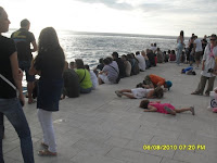 Zadar’ın marinası oldukça gelişmiş durumda, dediğim gibi adalara buradan her gün düzenli feribotlar kalktığı gibi, günlük turlar da bu marinadan yapılıyor. Marinanın ilerisinde ise DENİZ ORGU dedikleri bir şey yapmışlar. Burun açık denize baktığı için deniz genelde dalgalı, dalgaların olduğu yerlere de farklı genişlik ve uzunlukta kanallar yapmışlar ve üst tarafa da delikler delmişler. Dalgalar bu betona vurup o kanallardan içeri girince dalganın şiddetine göre farklı ses tonları çıkıyor, fotoğraftaki gibi herkes oturup bu sesleri dinliyor.
