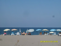 Deniz, güzel, sıcak ve keyifli. Kumsal uzun, Pazar günü olmasına rağmen çok kalabalık değildi. Hani birbirinin dibinde değil insanlar. Şezlong kiraları günlük 5 TL, ancak genelde deniz kenarında oturan insanlar kendi şezlong ve sandalyelerini getiriyorlar.